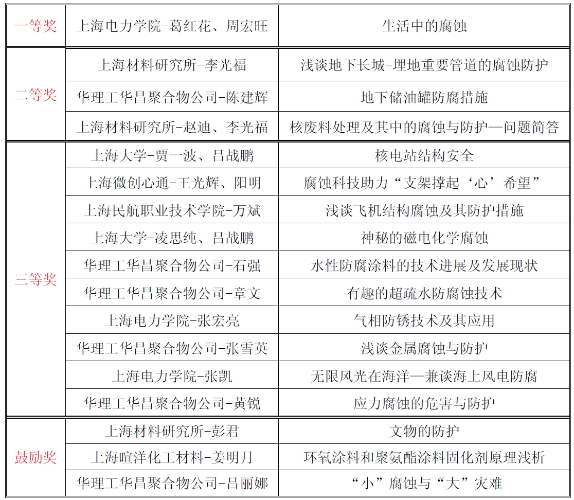 现在活动圆满结束,共收到18篇文章,初审后的有效文章17篇。学会组织专家组对来稿进行了评阅,排分的顺序结果如下,将对作者给以奖励,优秀作品将在学会网站和《腐蚀与防护》期刊的微信公众号上刊登。